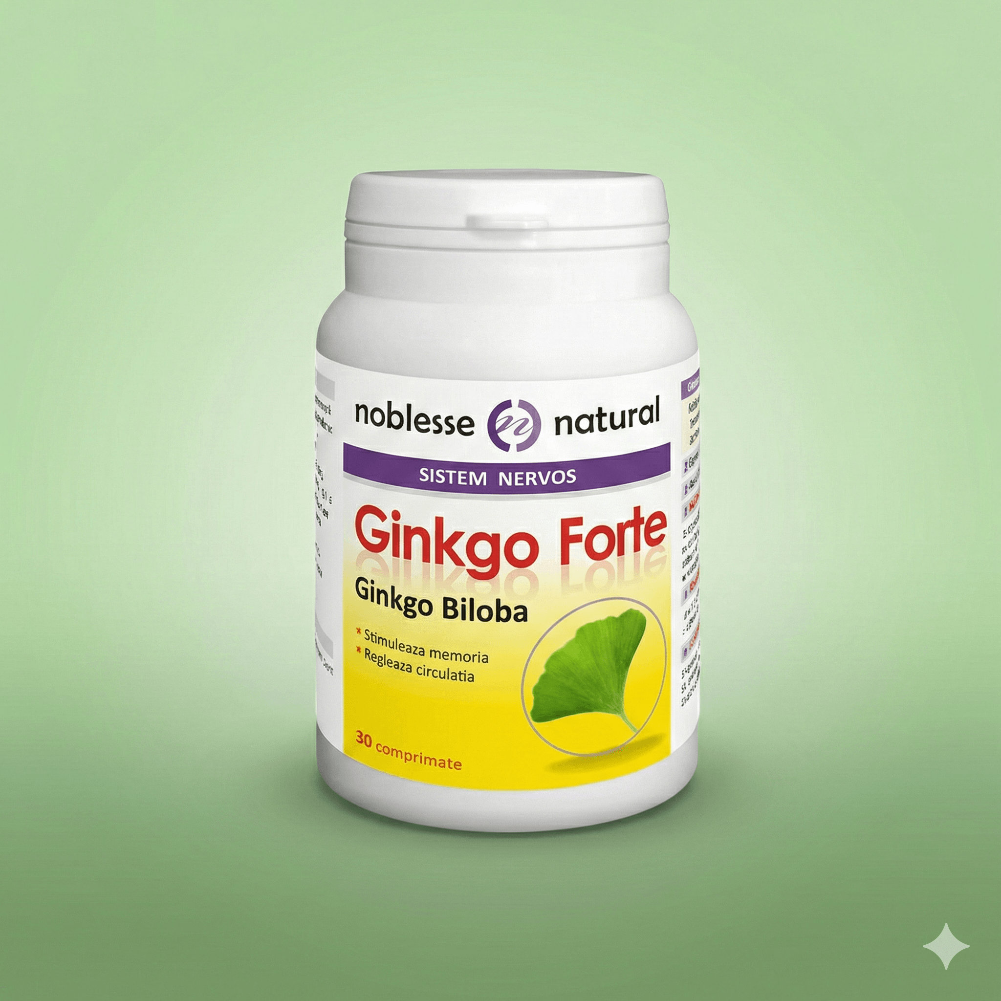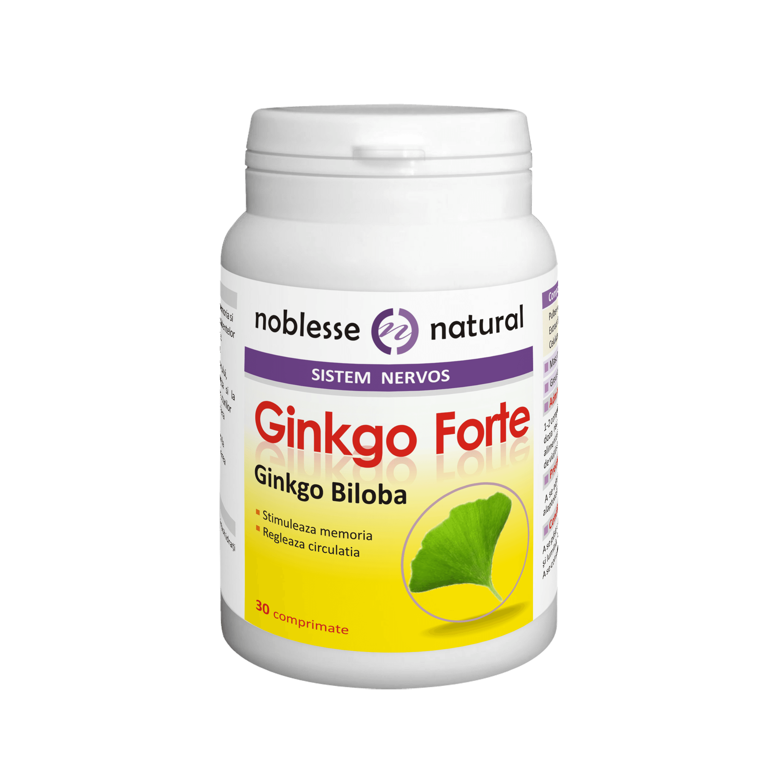 Gingko Forte Noblesse Natural contine extract concentrat de Gingko Biloba, planta recunoscuta pentru beneficiile sale asupra memoriei si circulatiei.