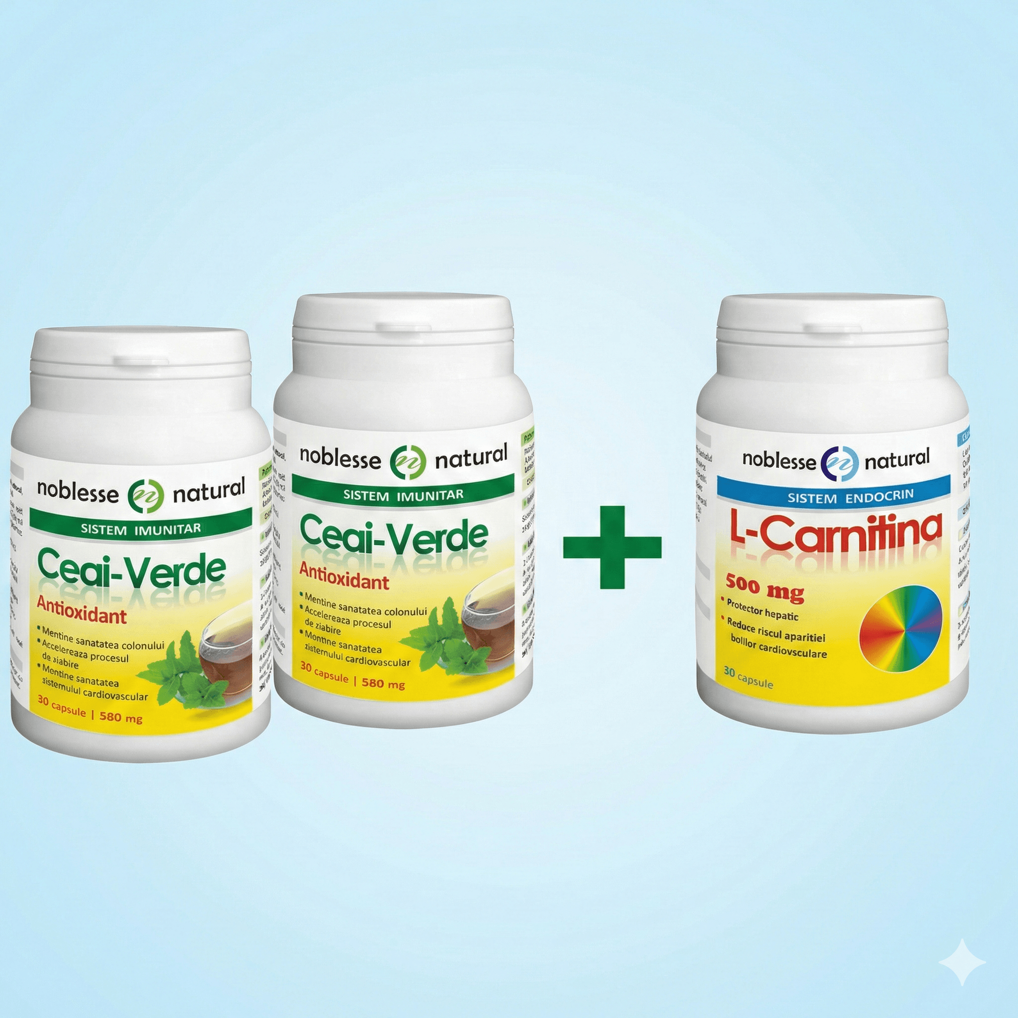 Pachet Detox & Energie – 2 Ceai Verde + 1 L-Carnitina.